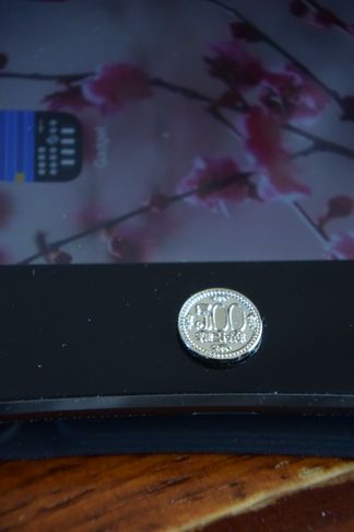 iPad miniのホームボタンに貼っている、500円玉デザインのシール。