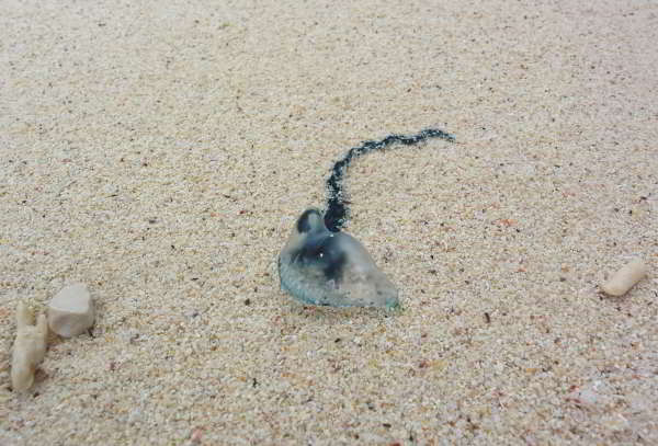 左: 浜に転がっていた毒々しい物体。かなり小さいのできっと誰か踏む。