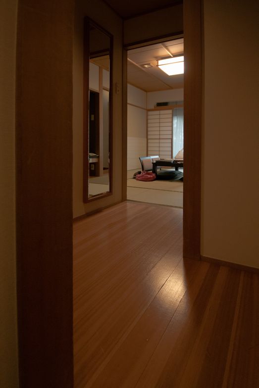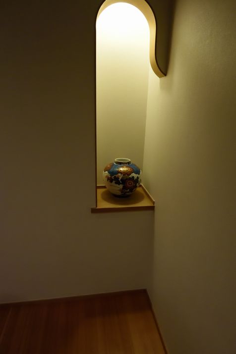 焼き物も置いてあったり。リビング以外のスペースも広々としていた。