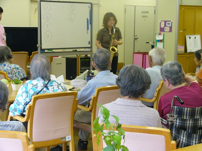 近所の高齢者施設へ七夕のお祝い演奏に行ってきた。演奏をしに行くというより、お手伝いをしに行くという意識で毎回お邪魔している。私にできることといったら演奏ぐらいしかないのだ。毎度、貴重な機会をいただきコチラの方が感謝しっぱなし。今日の「お勤め」は、入所者の方々からなるコーラス隊をキーボードで伴奏するのと、サックス独奏である。今日のコーラス隊はおそろいの衣装をきてちょっとお洒落をしている。皆さんの表情がいつにも増して明るく嬉しそうだ。七夕ということで、歌もサックスも夏や星に関するものを集めた。季節に関する日本の歌を探したらまず困ることはない。ナント風流な文化をもつ国なんだ、ココは。日本人に生まれて良かったなぁと思える理由の1つ。