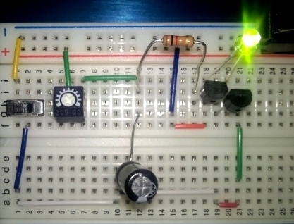 「設定時間になると」「LEDがチカチカ点滅を繰返す」回路になる…ハズ。という読み。