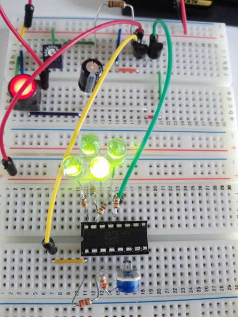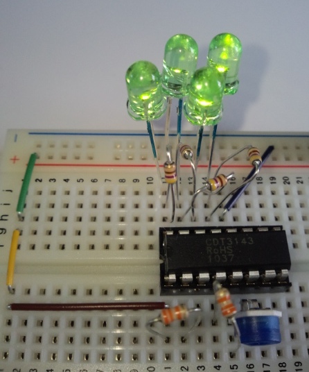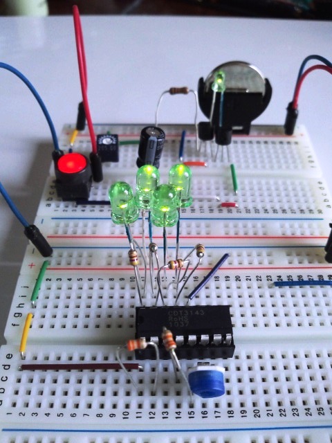 電源をいれると4つのLEDがチカチカ点滅を繰返すというもの。